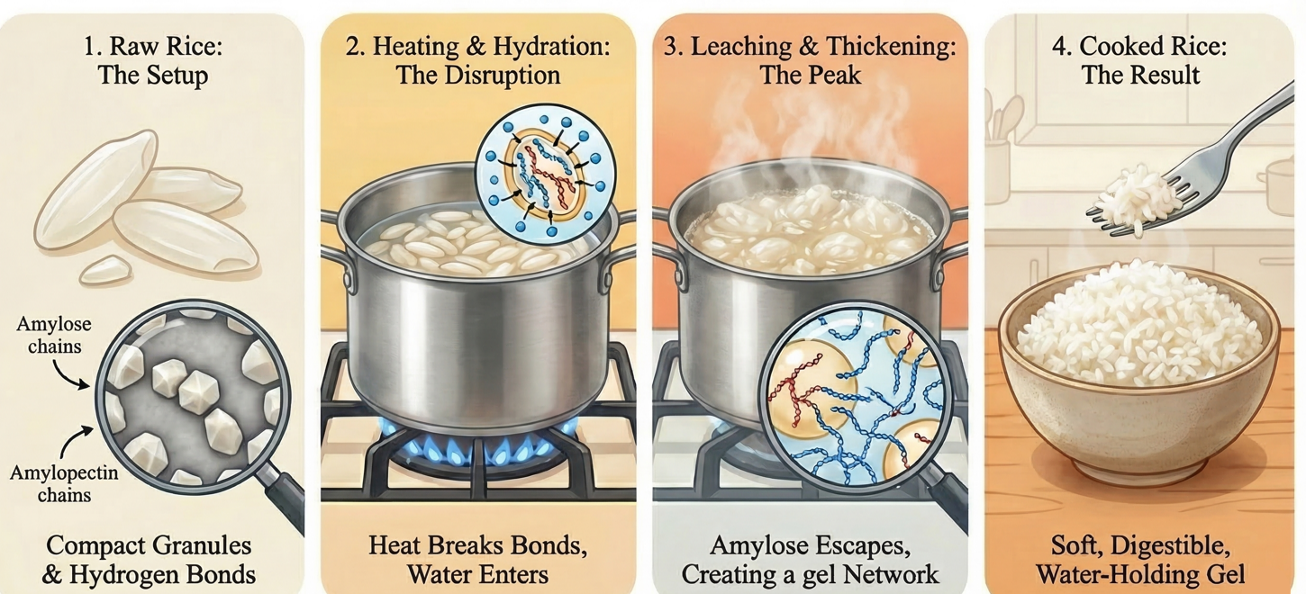 At room temperature, they just sit there. But when you throw the rolled dough onto a tawa heated above 140°C (280°F), you provide the energy they need to wake up and collide.